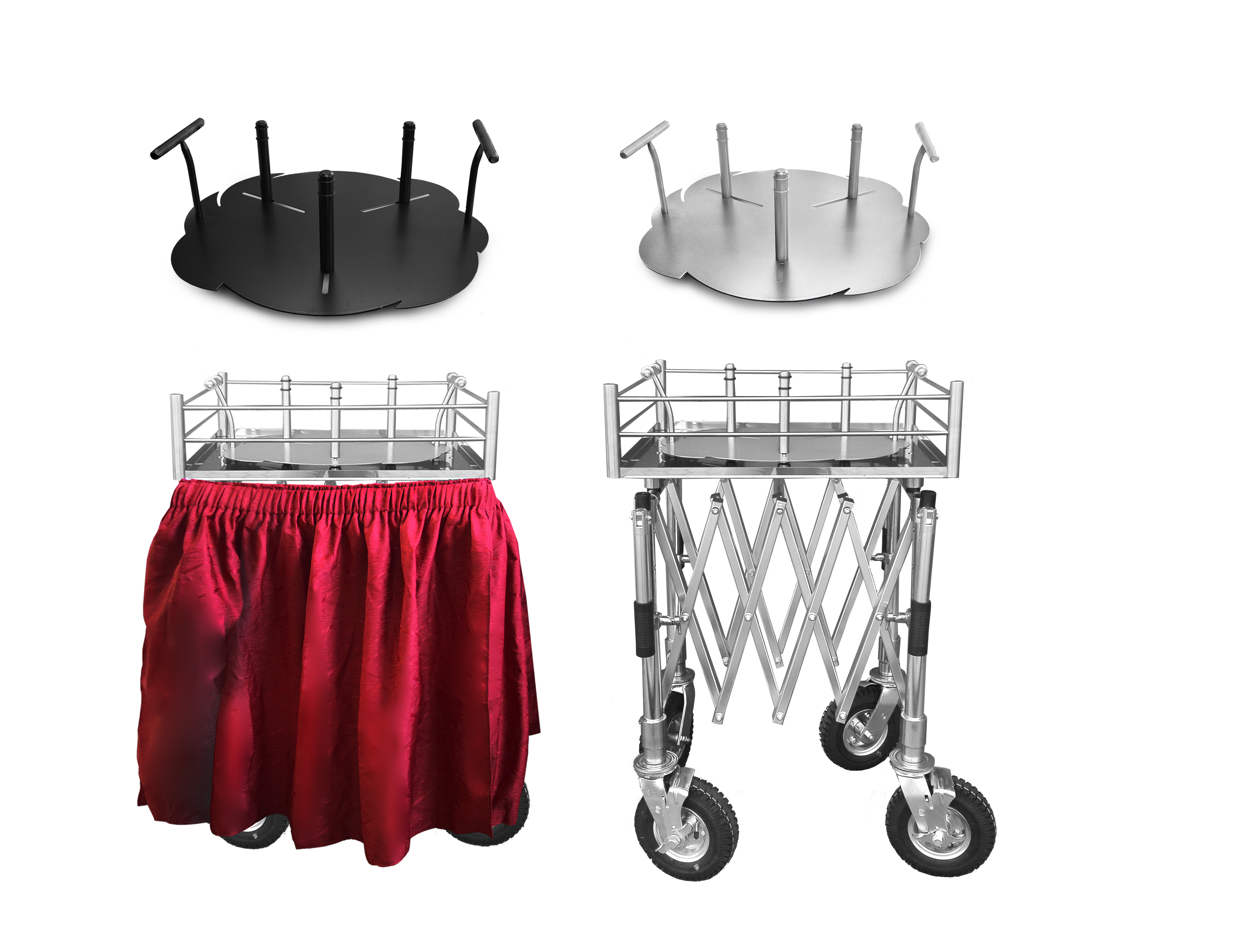 Taca została wykonana z polerowanej blachy, pasuje do wózków nożycowych. Wymiary tacy to 60x60x20 cm.