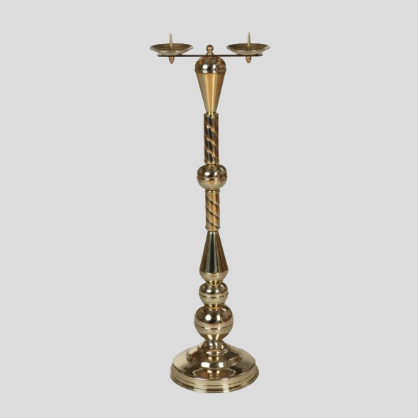 Lichtarz na dwie świece z polerowanego mosiądzu na wysoki połysk i zabezpieczony specjalnym verniksem.